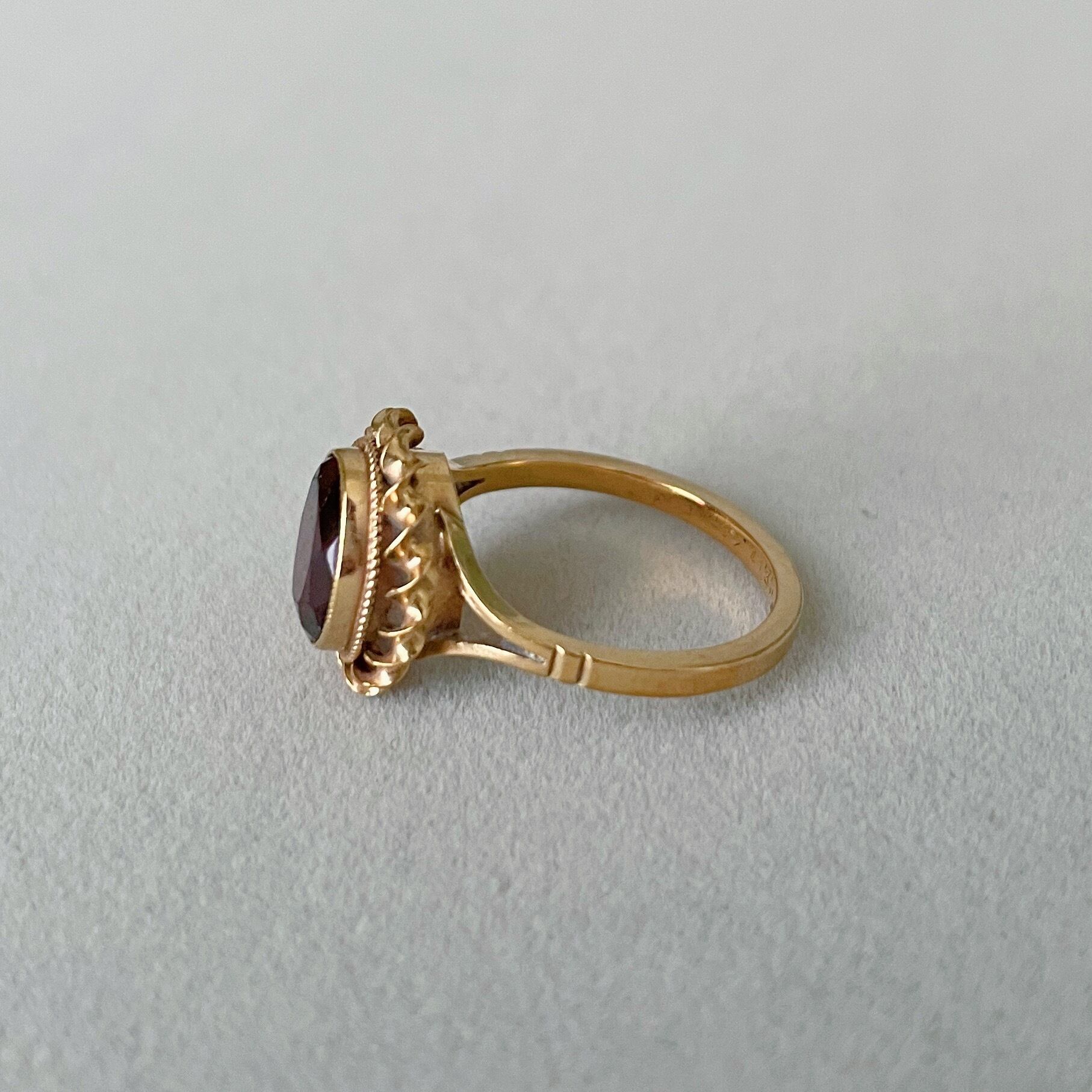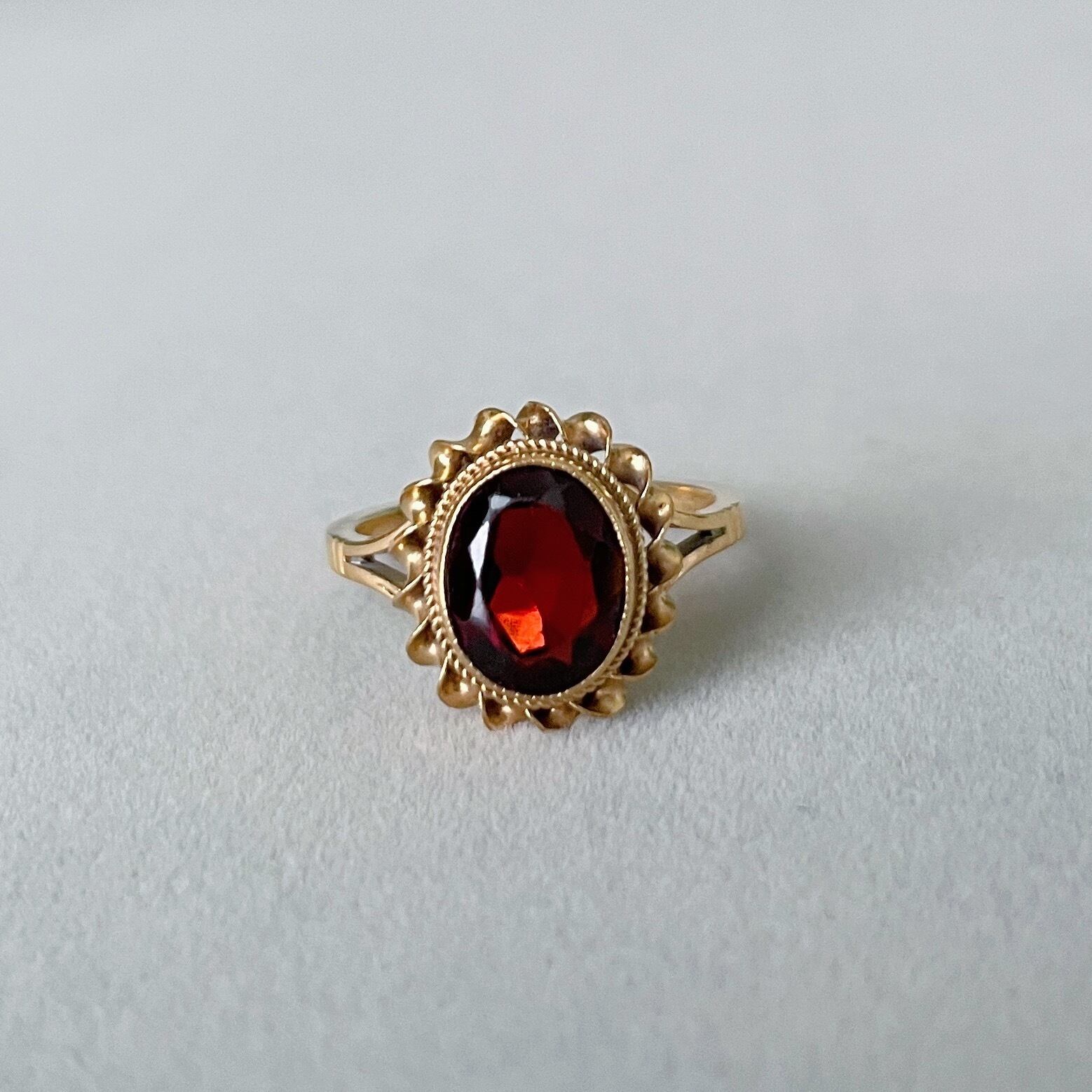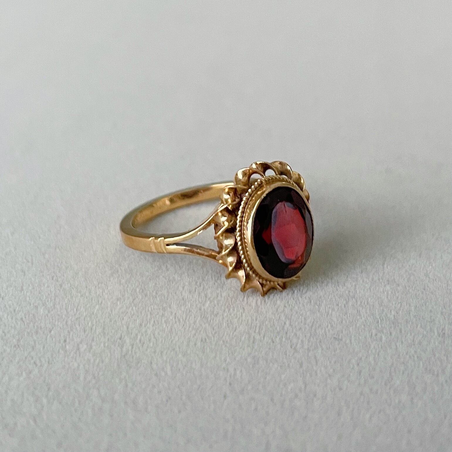 1900年前後イギリスバーミンガムのアンティークリングです。一粒ガーネットが煌びやかに存在感を放つこのリングの全長は約13mmと大ぶりサイズです。