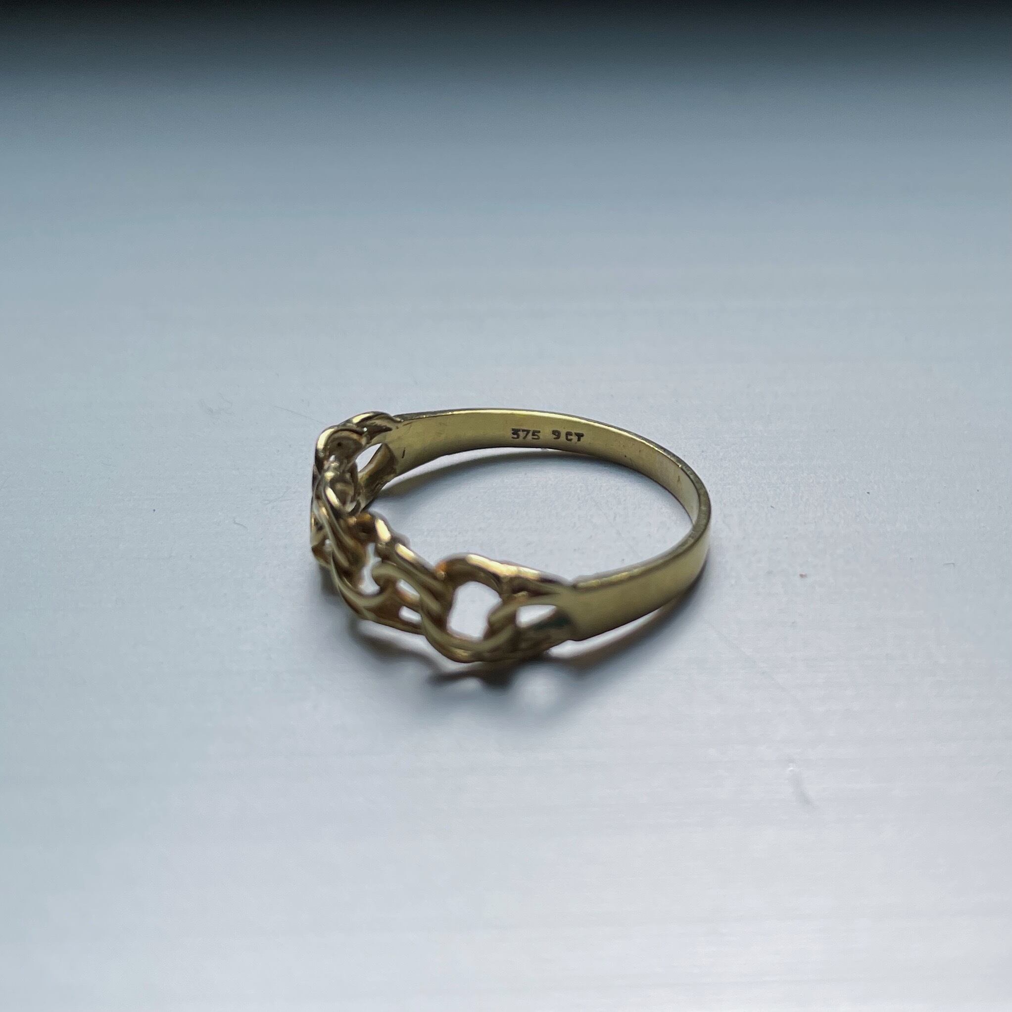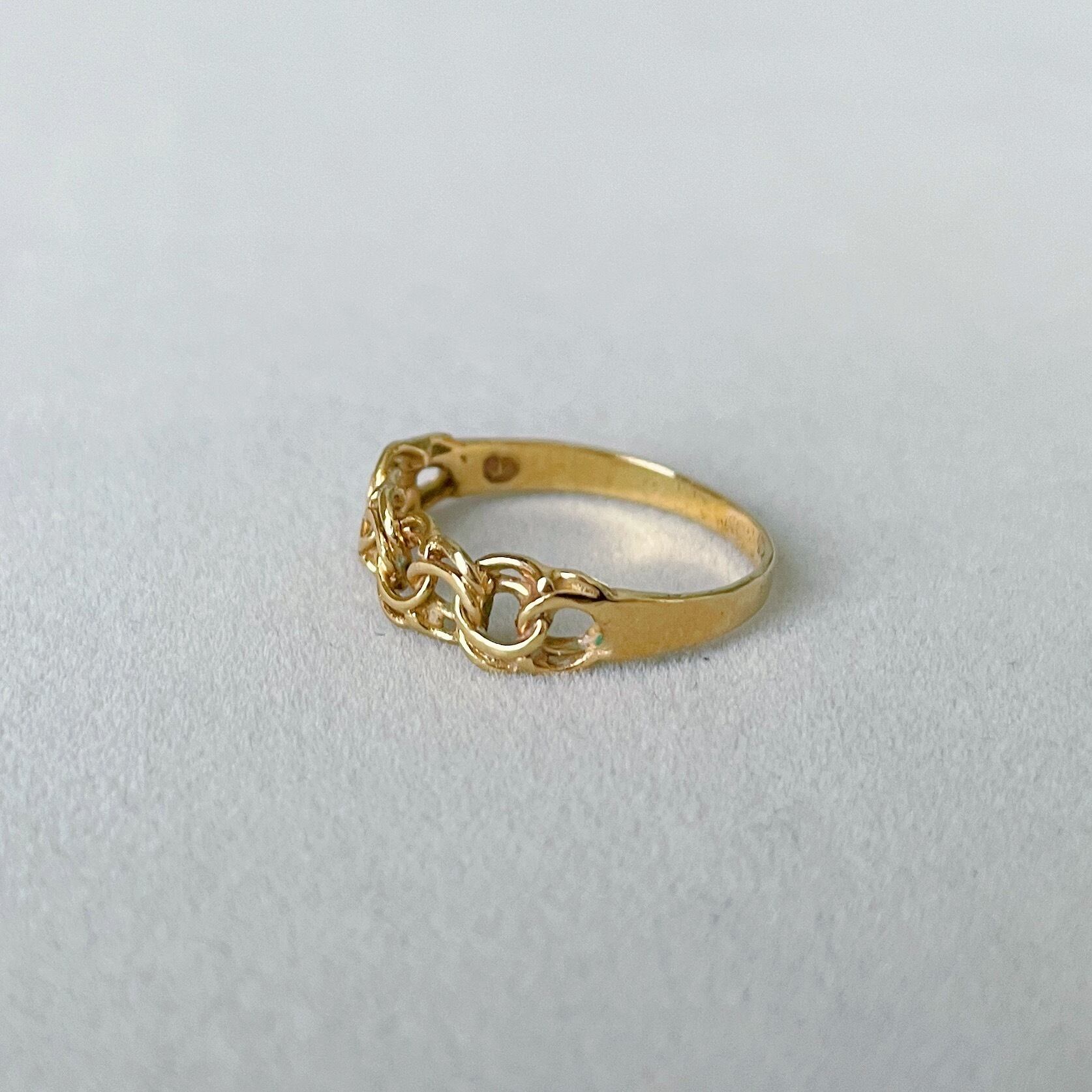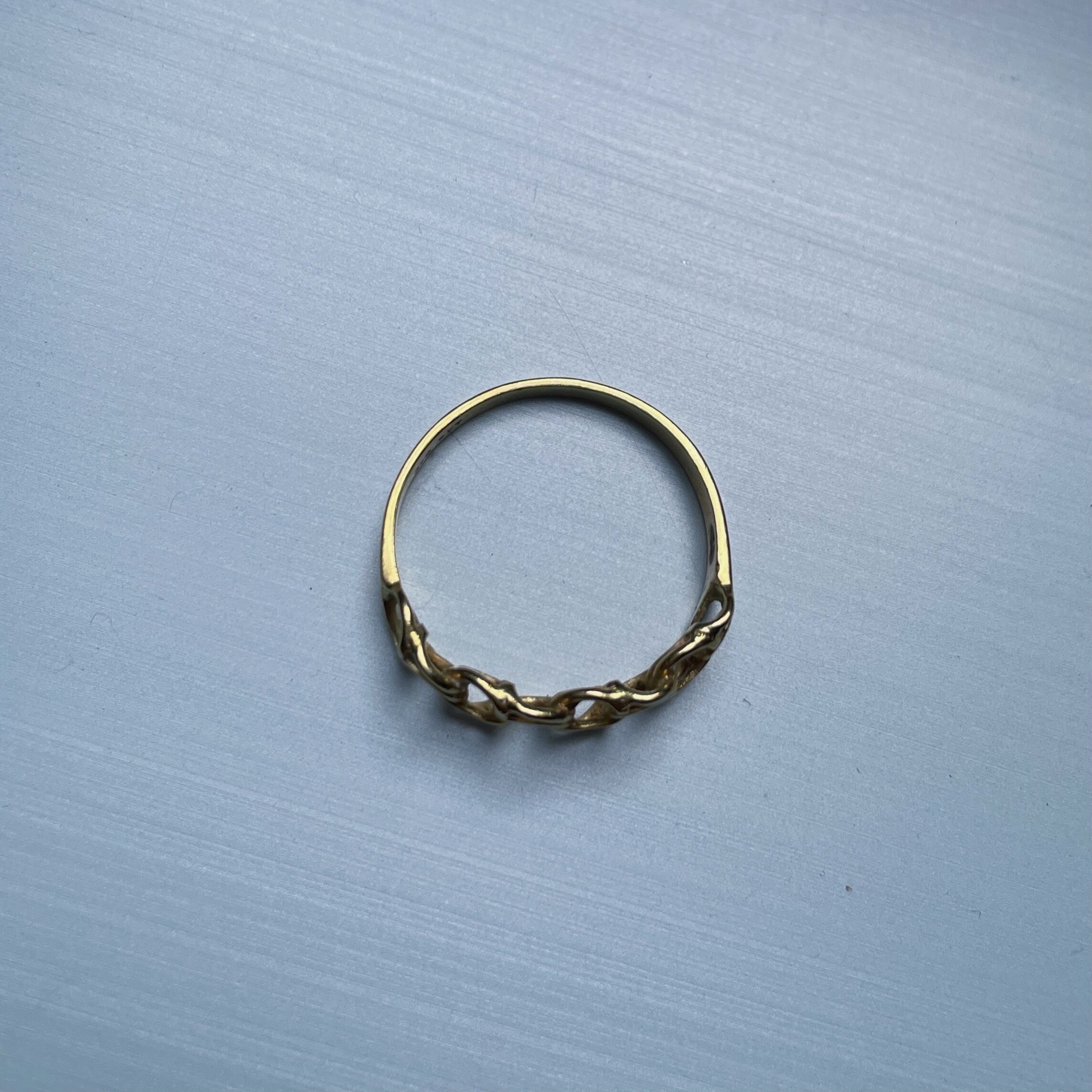 1900年前後のイギリス製アンティークのノットリングです。ノットとは恋人や友人、人と人が繋がる'絆'を表しており、解けることのない編み目がモチーフになっています。