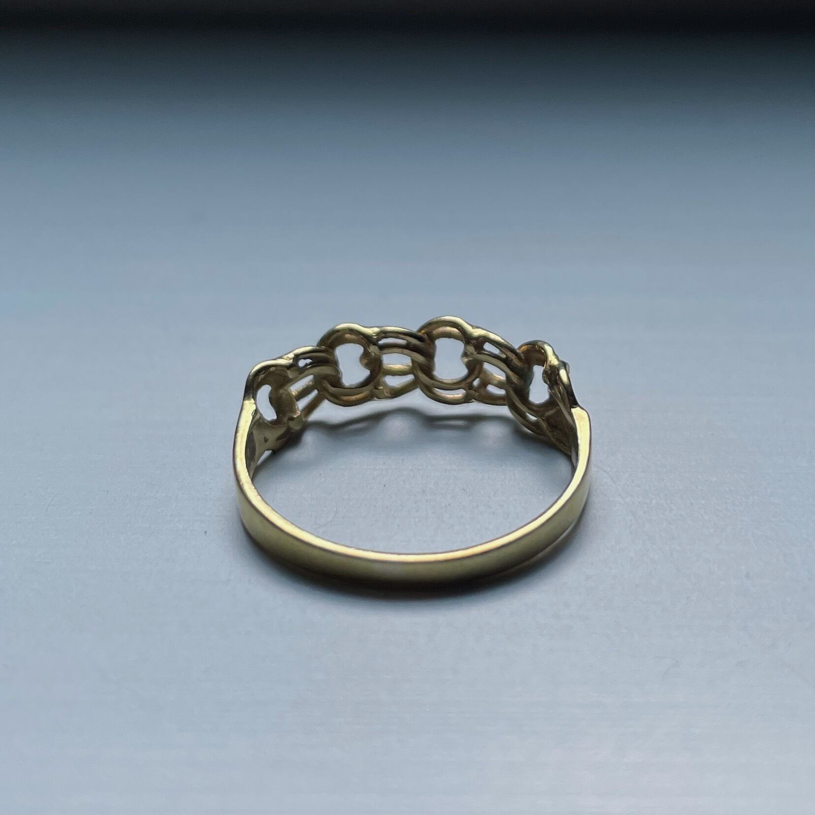 このリングの編み目は二連の輪っかで繋がってできており絆の強さを強調されています
