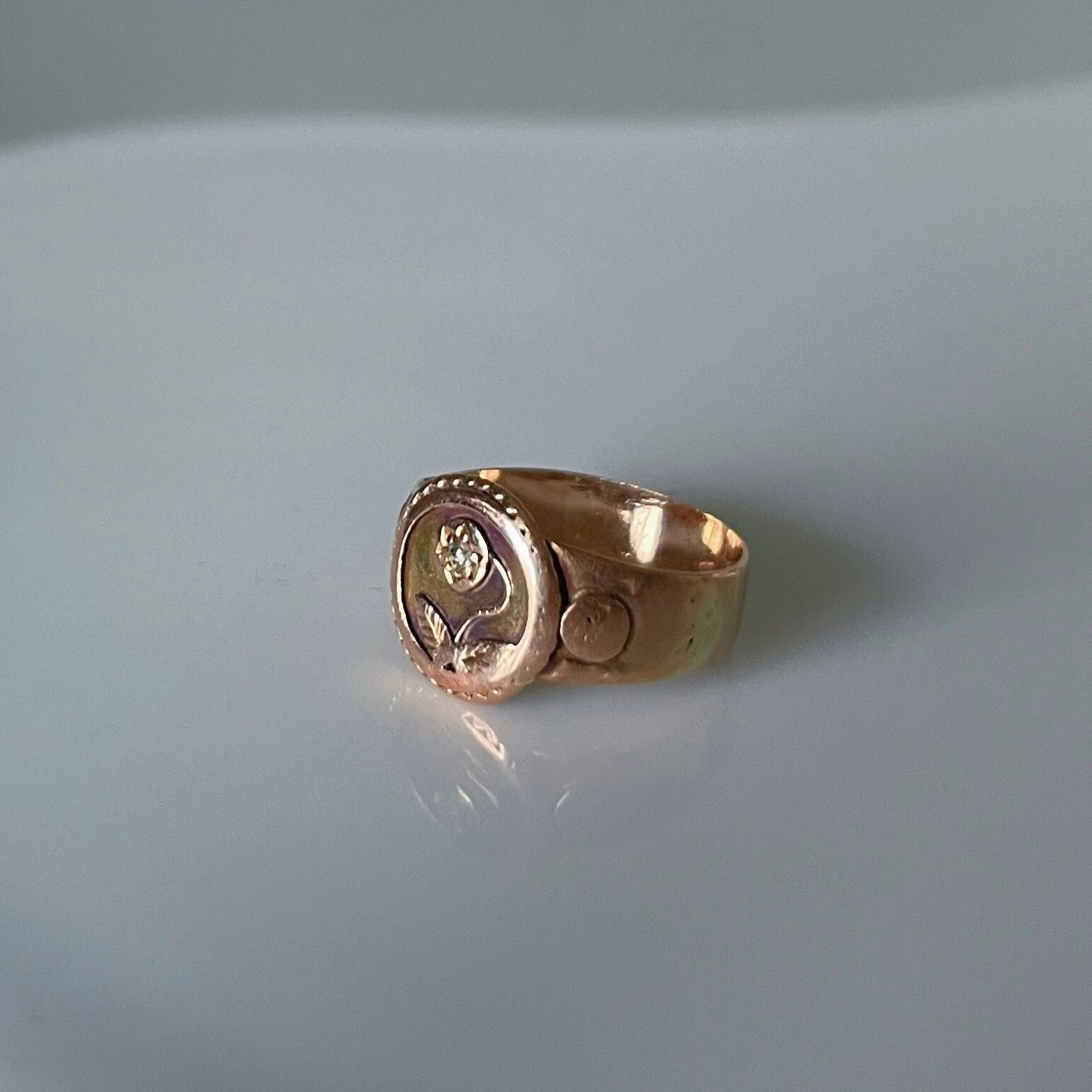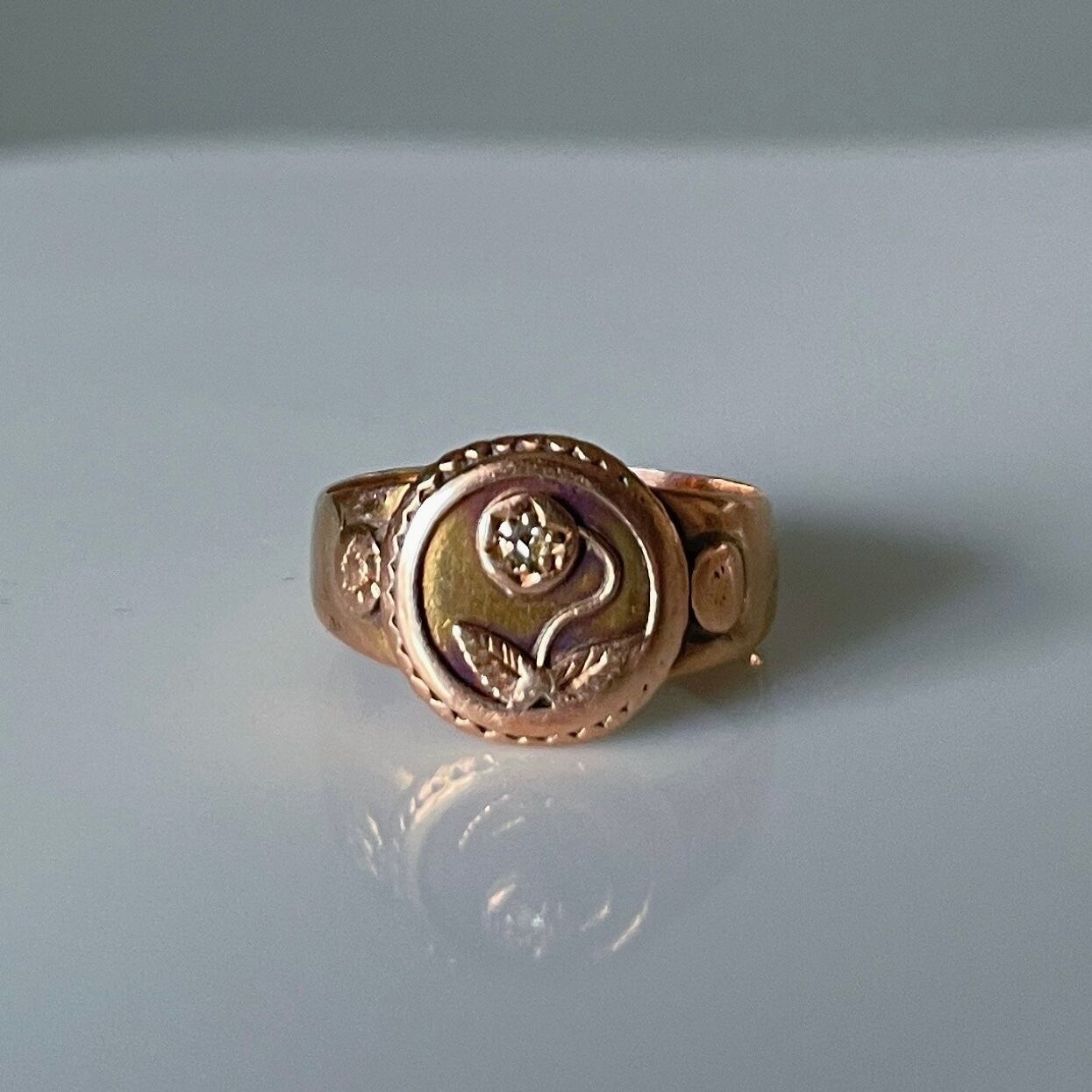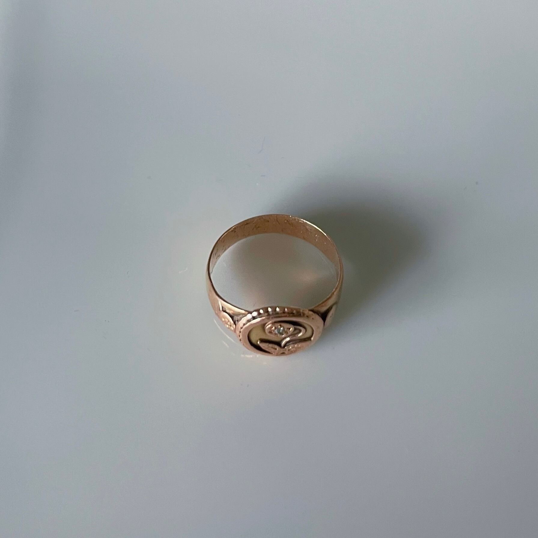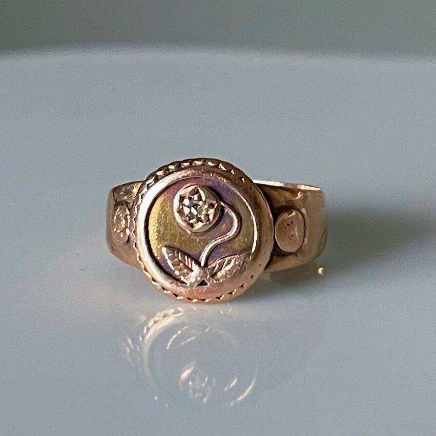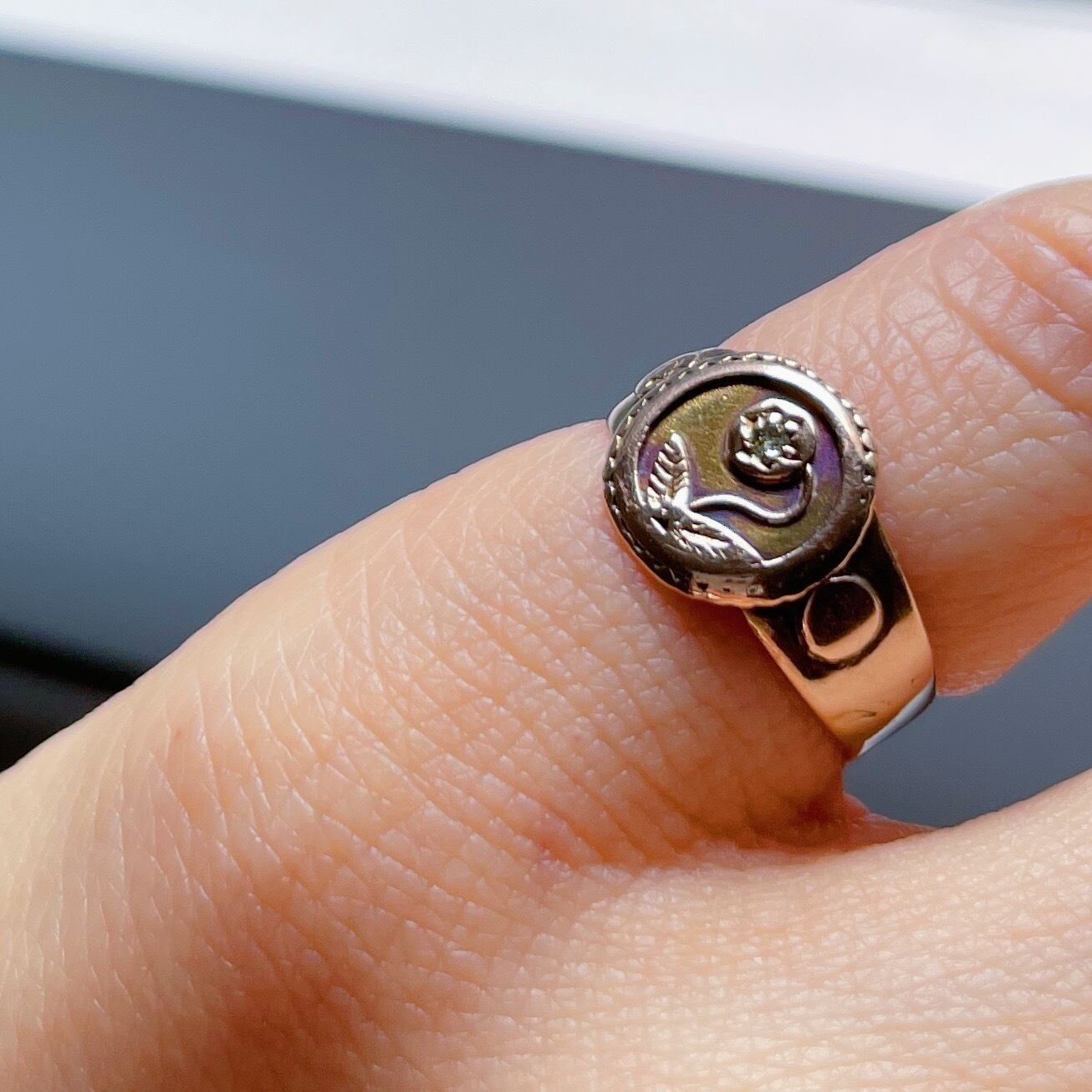 花にはローズカットの一粒ダイヤモンドがセットされています。100年以上経つ今でもコンディションはいいです。