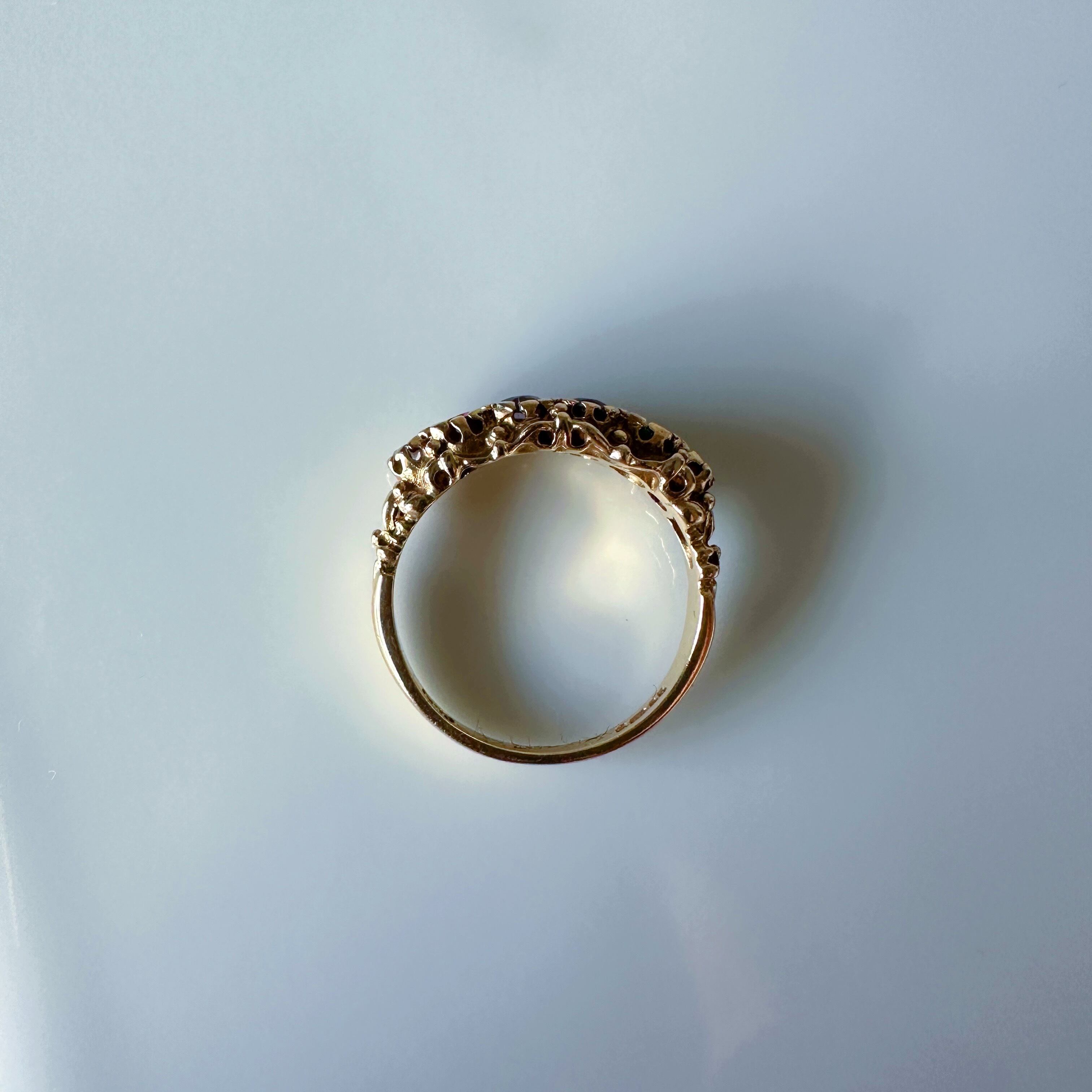 地金は9金でゴシック調にも似たデザインがエレガントで印象的なリングです